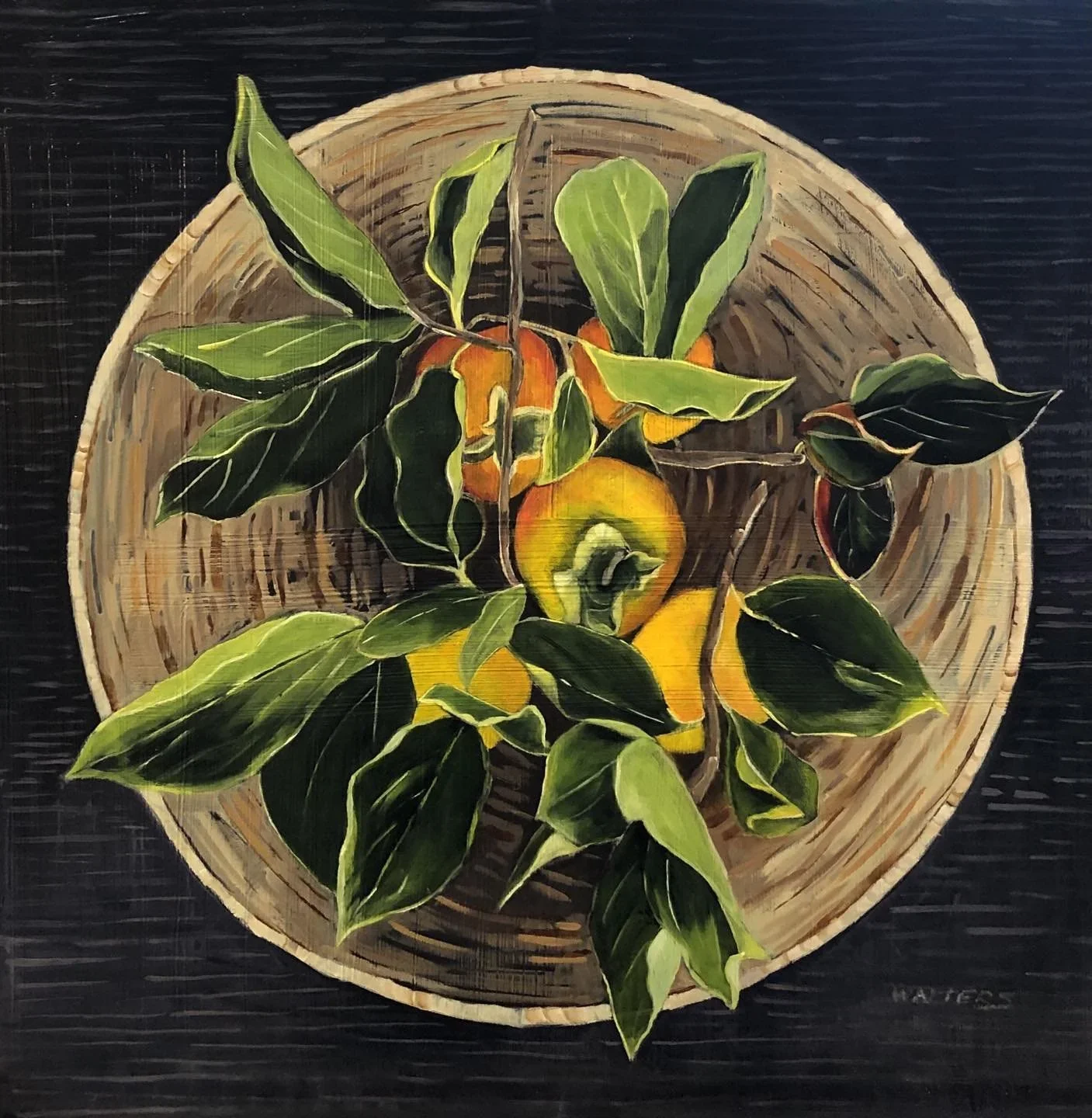 Sunflowers in a Japanese Basket, 12 x 12 inches
